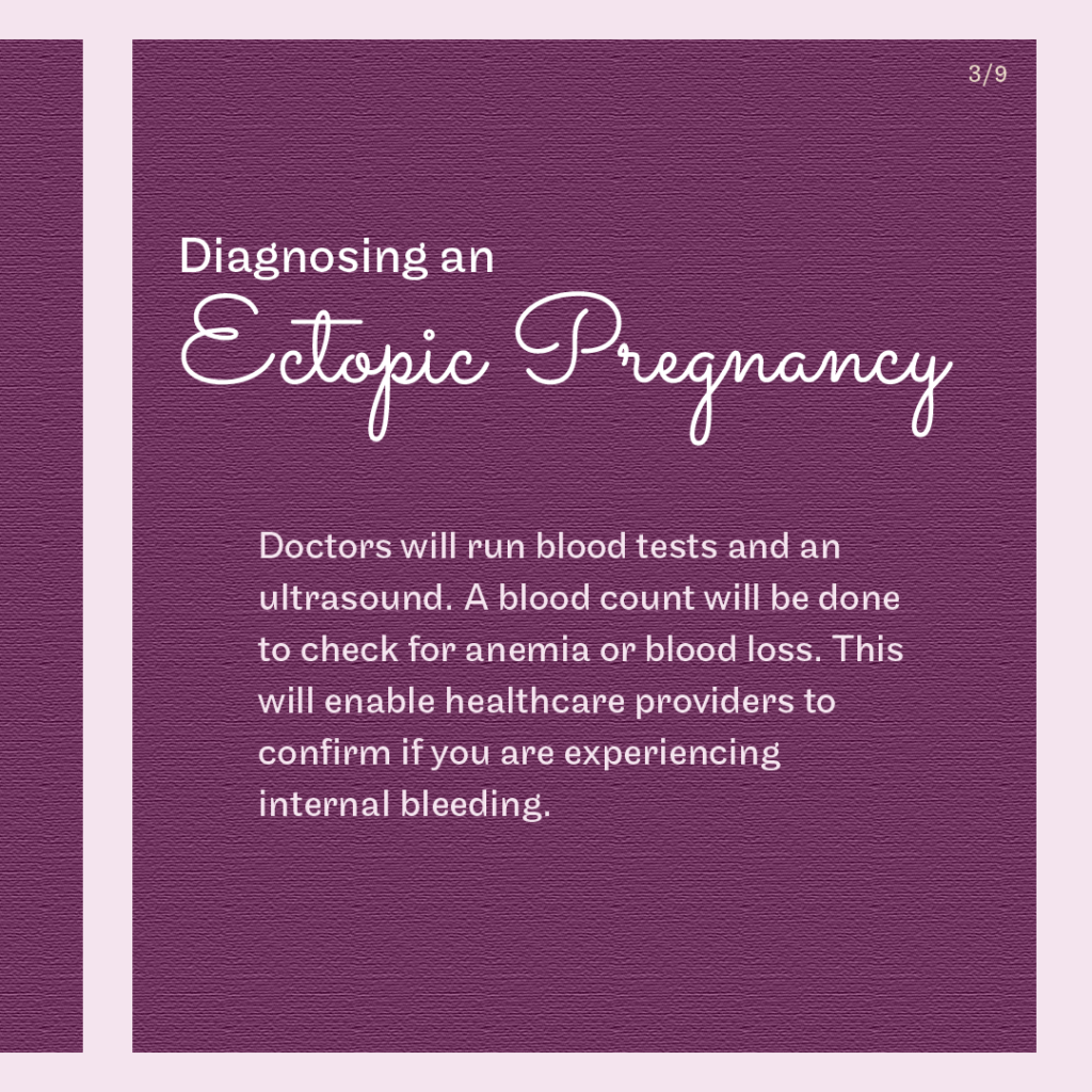 To officially diagnose an ectopic pregnancy, doctors will run blood tests and an ultrasound. A transvaginal ultrasound enables doctors to use sound waves to locate the fertilized egg (6). An abdominal ultrasound will enable doctors to confirm your pregnancy or to check for internal bleeding (6).