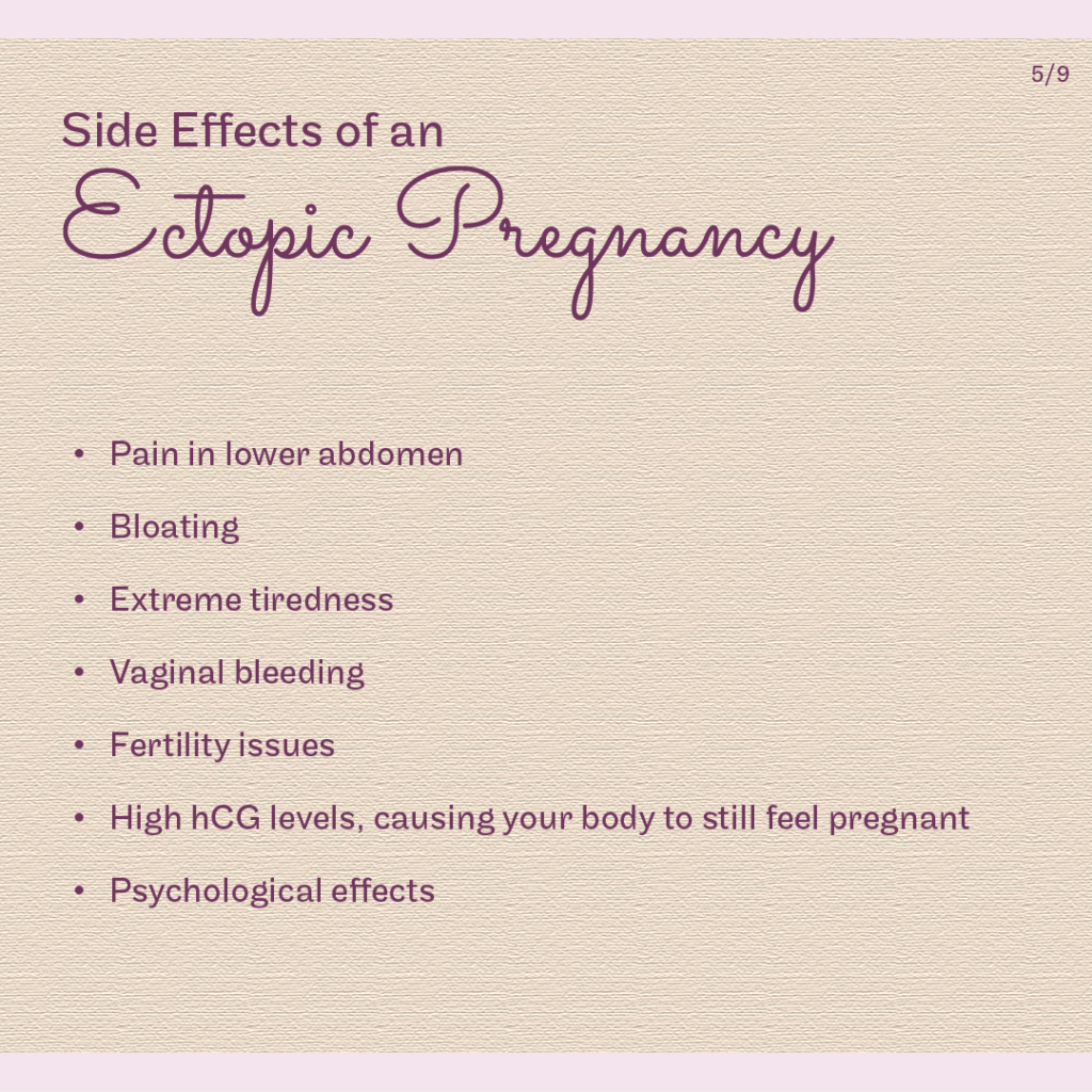 Healing from an ectopic pregnancy can look different depending on the treatment used. In many cases, side effects of ectopic pregnancy could continue for a few weeks following treatment (7). These side effects may include: