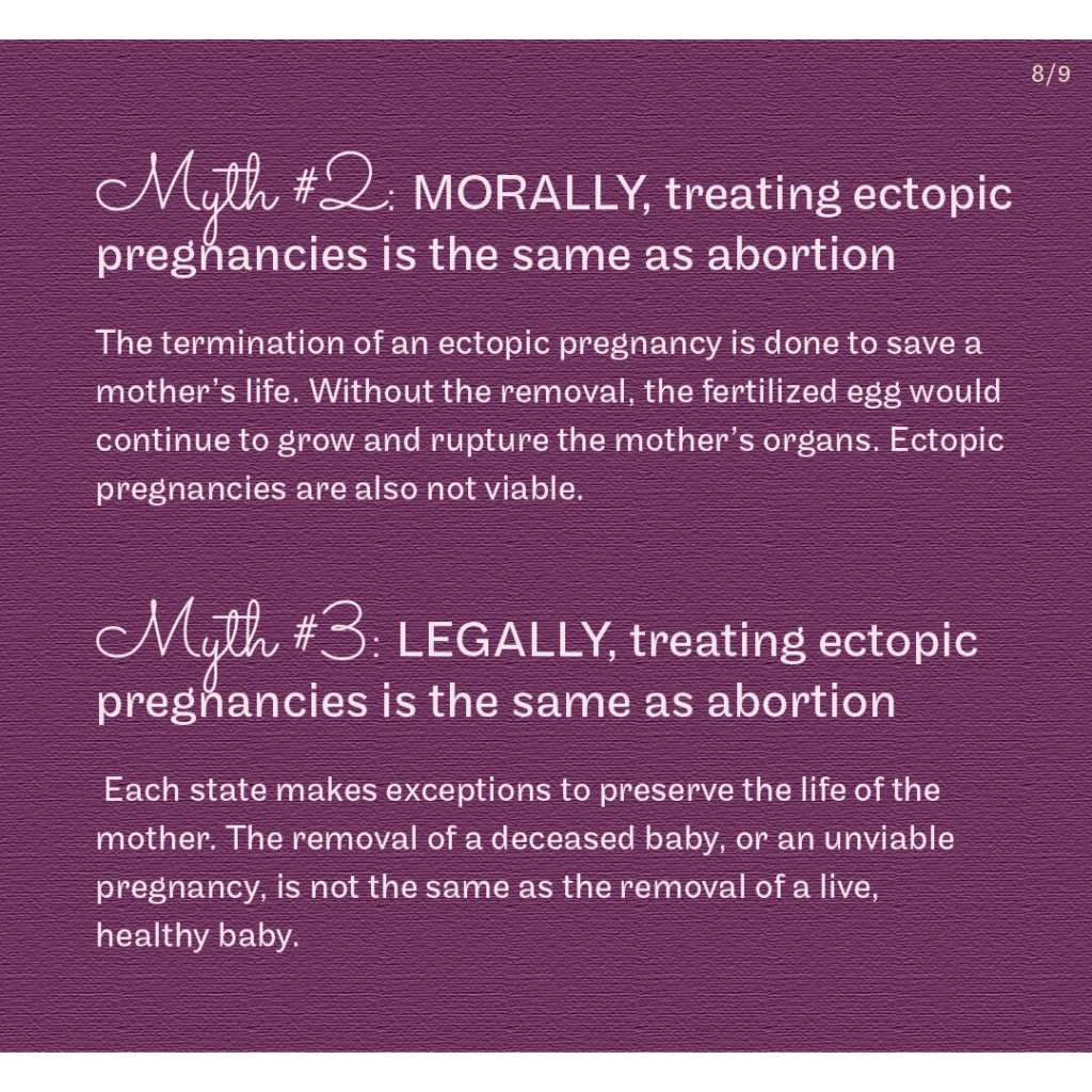 Each state defines abortion, and each of these definitions exclude ectopic pregnancies. Each state makes exceptions to preserve the life of the mother (10). The removal of a deceased baby, or an unviable pregnancy, is not the same as the removal of a live, healthy baby.