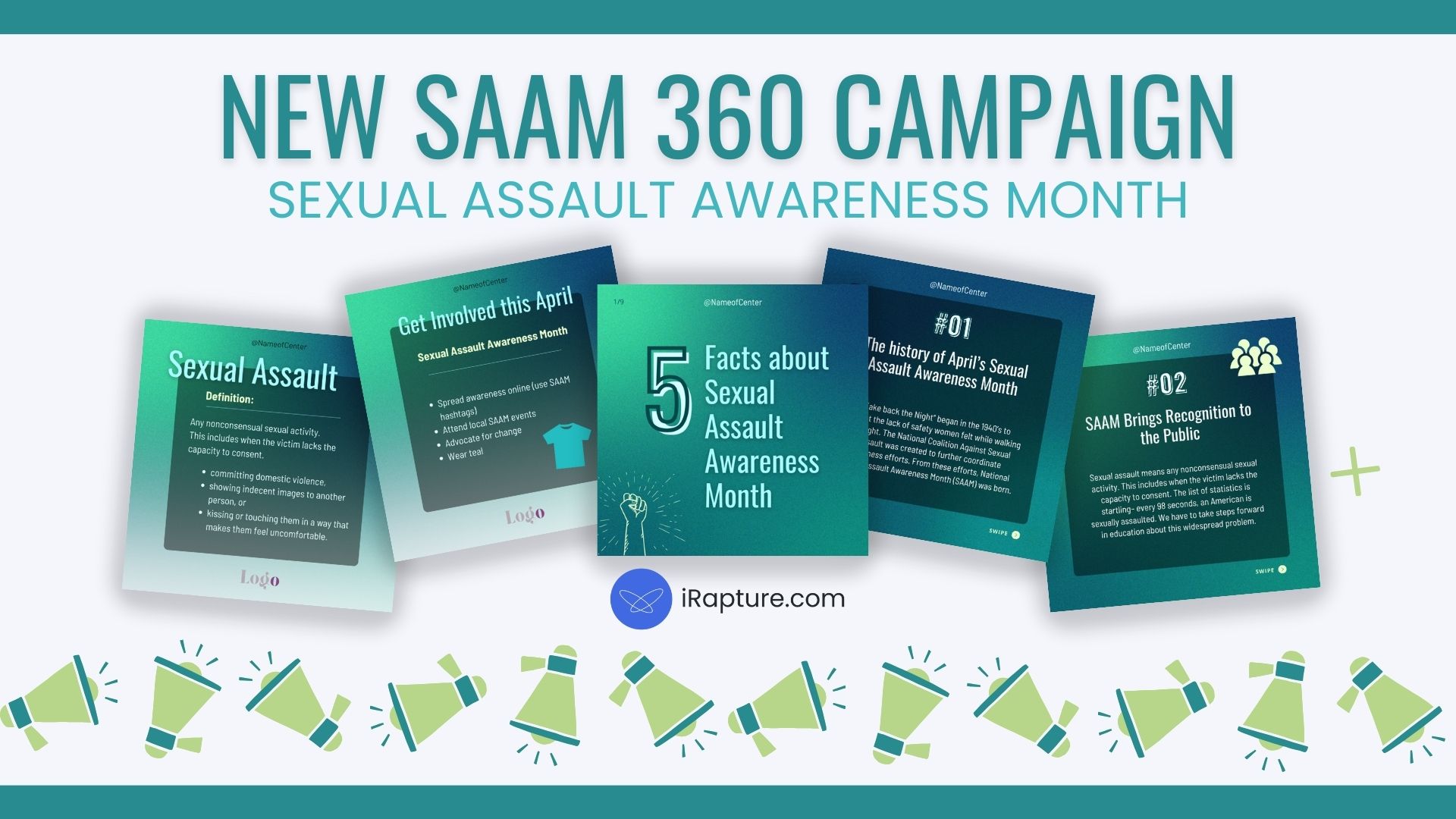 Our 360 Campaign includes fresh content for Instagram and Facebook that helps spread the word about Sexual Assault Awareness Month. Through social media posts, video, and an article, your message will raise awareness in an impactful way.